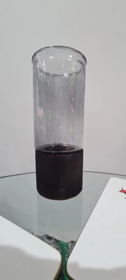Elegant Glass Vase with Wooden Base