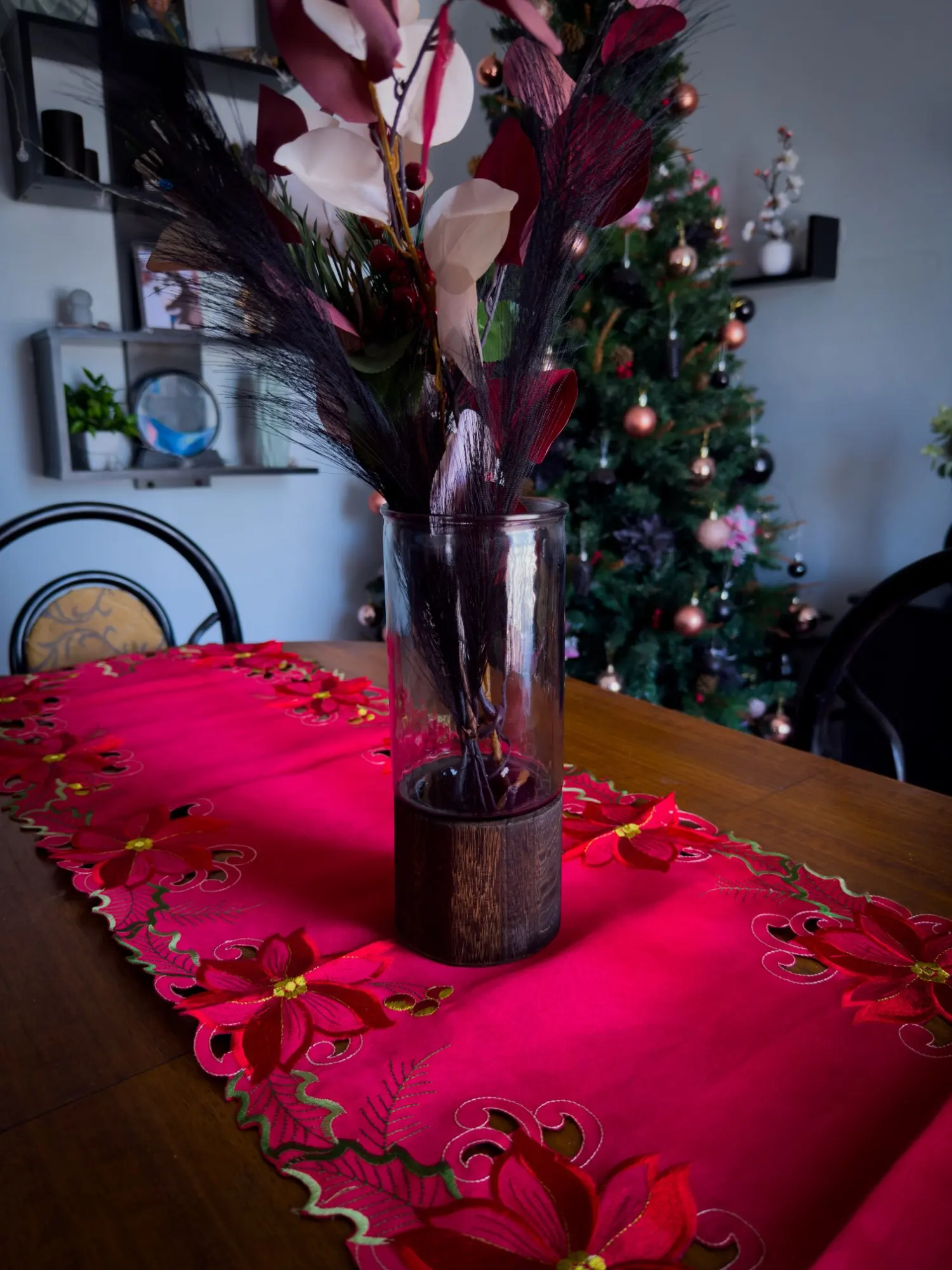The Elegant Glass Vase with Wooden Base combines clear glass with a natural wooden base, creating a minimalist decorative piece that elevates any space with subtle sophistication.